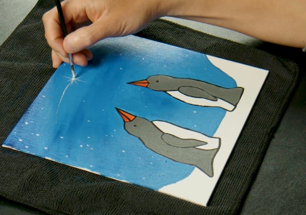 Make a wish! Join Matt in creating an adorable painting of two penguins gazing at a shooting star....