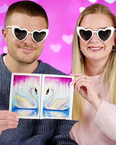 Tune in to join Hayley and special guest Tyler in painting a romantic watercolor scene of two swans forming a heart! Perfect for a date night or a family bonding activity, joining this live with a loved one will result in two separate paintings that come together to form a collaborative and complete work of art.