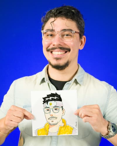 Transform yourself into a manga shadow warrior! Join Diego in putting a fun twist on a self-portrait drawing and “mangafy” your photo with our tracing technology. Select a male warrior outline from the gallery and trace it onto your paper, then upload your picture and use the drag feature to position and trace the head onto your drawn figure. Once your outline is drawn, follow along in adding color and detail to enhance your “mangafied” features and bring your shadow warrior to life! Photo provided by Diego Chaves.