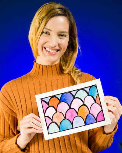 Enjoy a fun, simple, and stress-free creation that results in fin-tastic abstract artwork! Let mermaids be your muse as you join Ali in sketching out a scaly pattern inspired by a mermaid's tale, then get creative with paint and fill your pattern with vibrant colors.