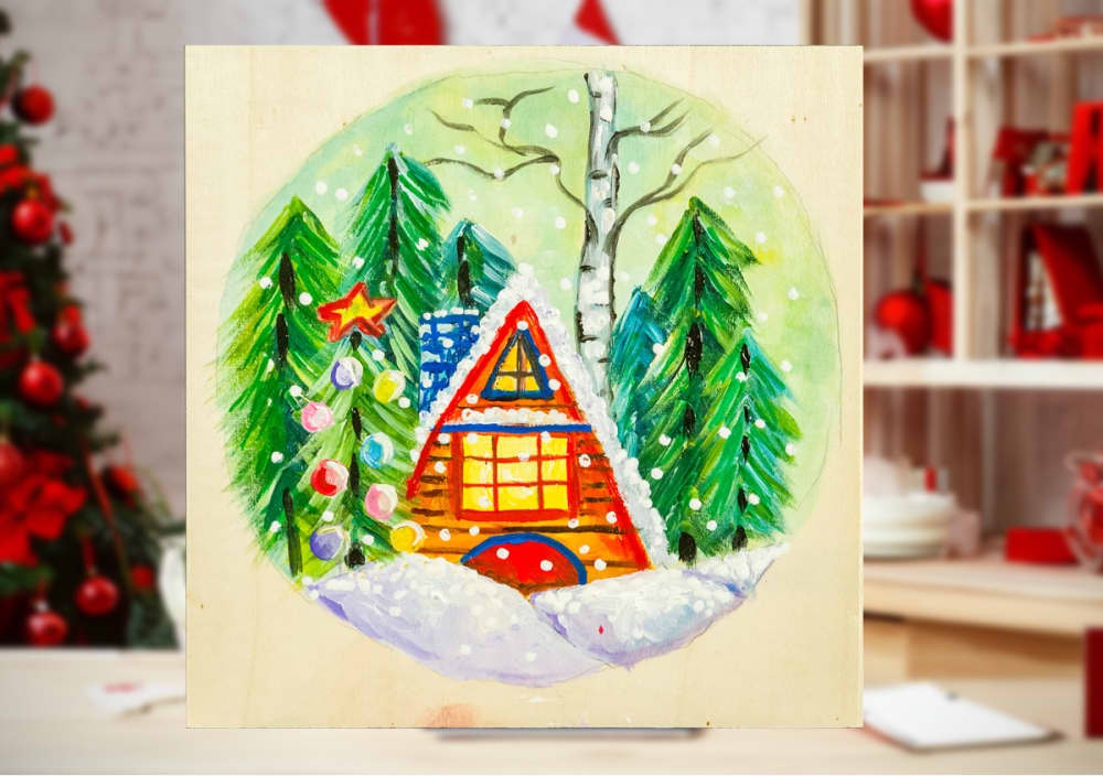 Get into the zone of the wonder of winter and paint a cozy woodland cabin glowing with the...