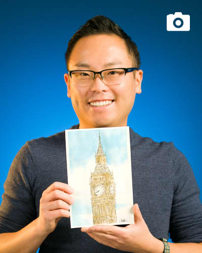 Travel across the pond from the comfort of your home and take in the striking architecture of London’s Big Ben! Join Matt in recreating the beauty of this famous tower clock on paper with watercolor and ink. Use our Smart Trace technology and the photo provided to trace the outline on your paper, go over it in pen for a stylistic look, and follow along in bringing the structure to life with watercolor paint. Whether you’re a London native or a lover of travel, this simple experience results in striking artwork you’ll want to put on display.