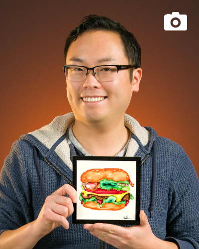 Create artwork that looks good enough to eat! Join Matt in using our tracing technology to illustrate a juicy, mouthwatering burger directly from a photo. Trace the outline, then grab a brush and some vibrant water-based markers to create a stylistic watercolor effect that brings your artwork to life. Simple, fun, and lighthearted, this experience is perfect for foodies, kids, and beginner artists alike!