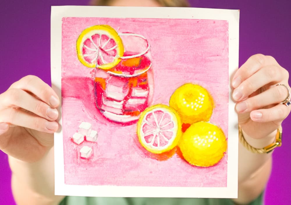 Pink Lemonade: Still-Life With Oil Pastels