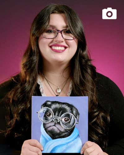 Paint a pet portrait with a fun and sophisticated twist! Join Ana in projecting a photo of a smug pug in glasses on your canvas using our Smart Trace technology, trace the outline, then follow along in bringing this sophisticated gentleman to life as you learn new techniques for creating with acrylic. Whether you’re the proud pug parent, a lover of animals dressed like humans, or you want to put a smile on someone’s face, this experience is fun for everyone.