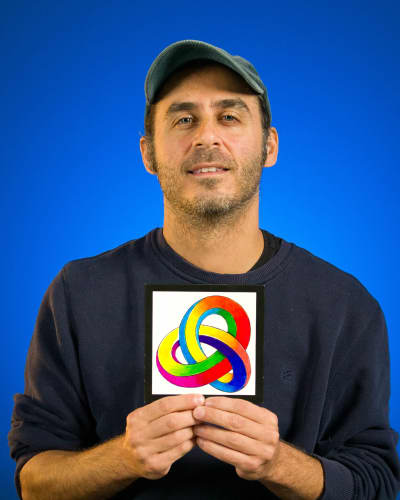 Experience another mind-altering optical illusion and join DiNo in creating your own version of the Triple Knot! Start by drawing this infinite 3D shape using our tracing technology, then make your illustrated illusion jump off the page by filling the shape with vibrant color gradients as you receive the creative and technical guidance that allows you to make the seemingly impossible, possible!