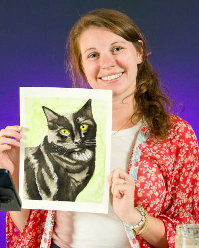 Learn how to paint your pet like a pro with watercolors! Join Sarah in painting a black cat from a photo reference as you learn to depict highlights, shadows, and fur texture with just one color.